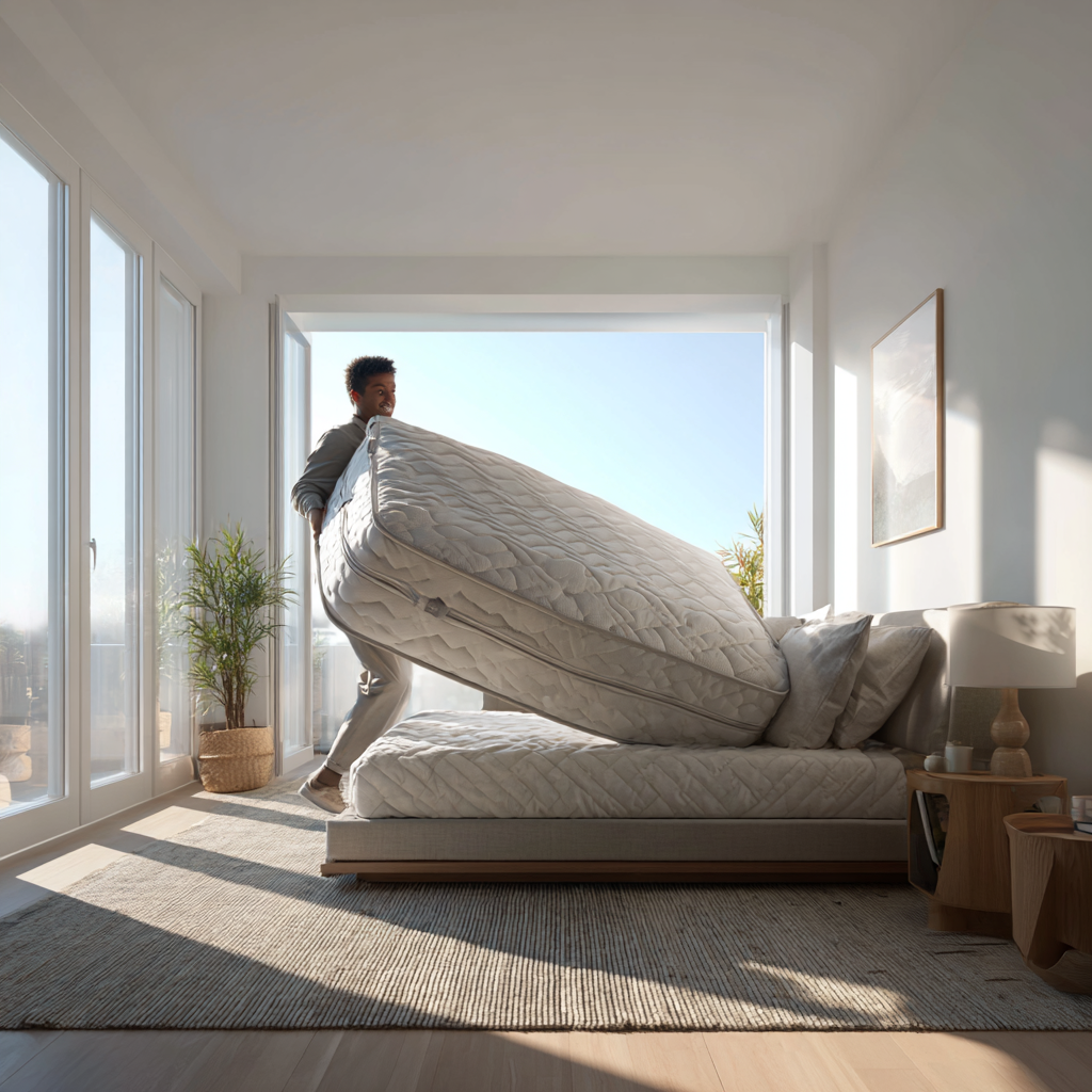 매트리스를 뒤집고 있는 모습