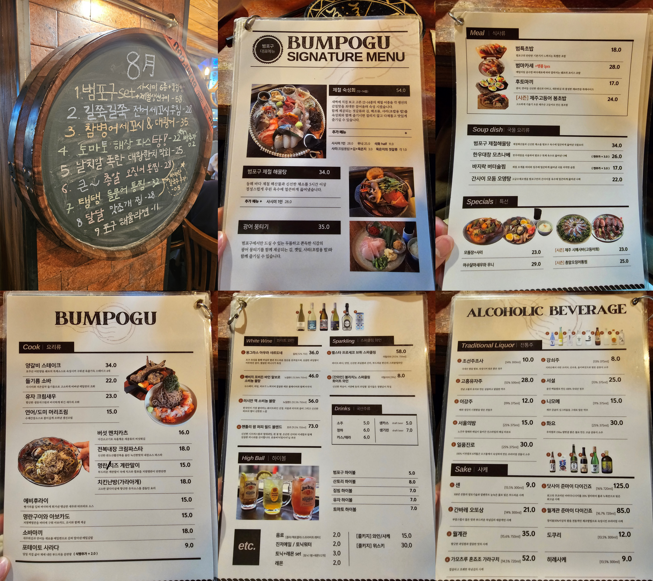- 대표 회 메뉴: 제철 숙성회, 범포구 세트(제철생선)