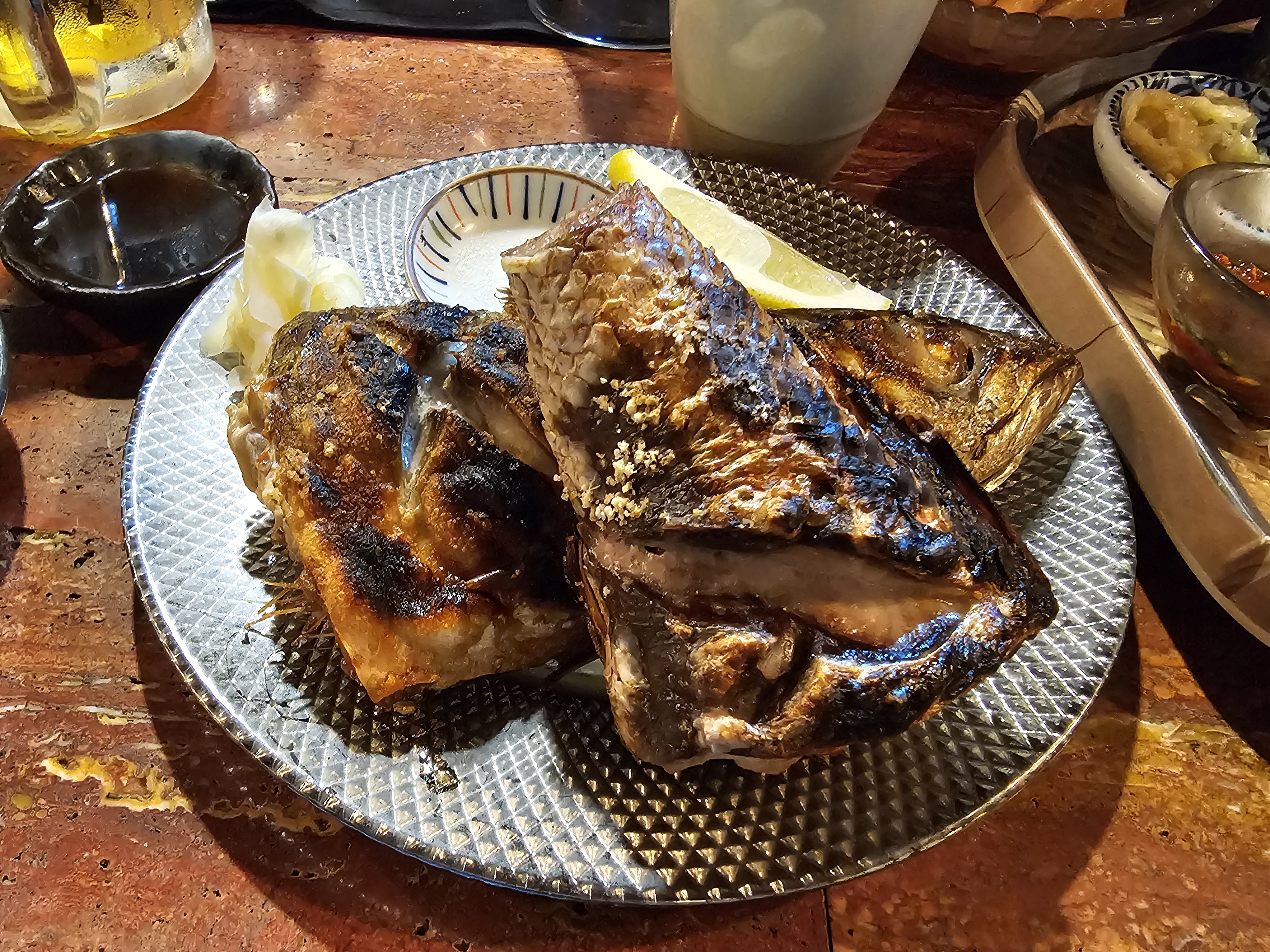 두 번째로 나온 것은 제철 생선구이였습니다. 구이는 바삭하게 잘 구워져 있었고, 간도 적절해 밥 없이도 맛있게 즐길 수 있었습니다. 흔히 생선구이를 먹다 보면 비린내가 남거나 살이 퍽퍽한 경우가 있는데, 범포구의 생선구이는 그런 단점이 전혀 없었습니다. 외부는 바삭, 내부는 촉촉해서 술안주로도 잘 어울렸습니다.