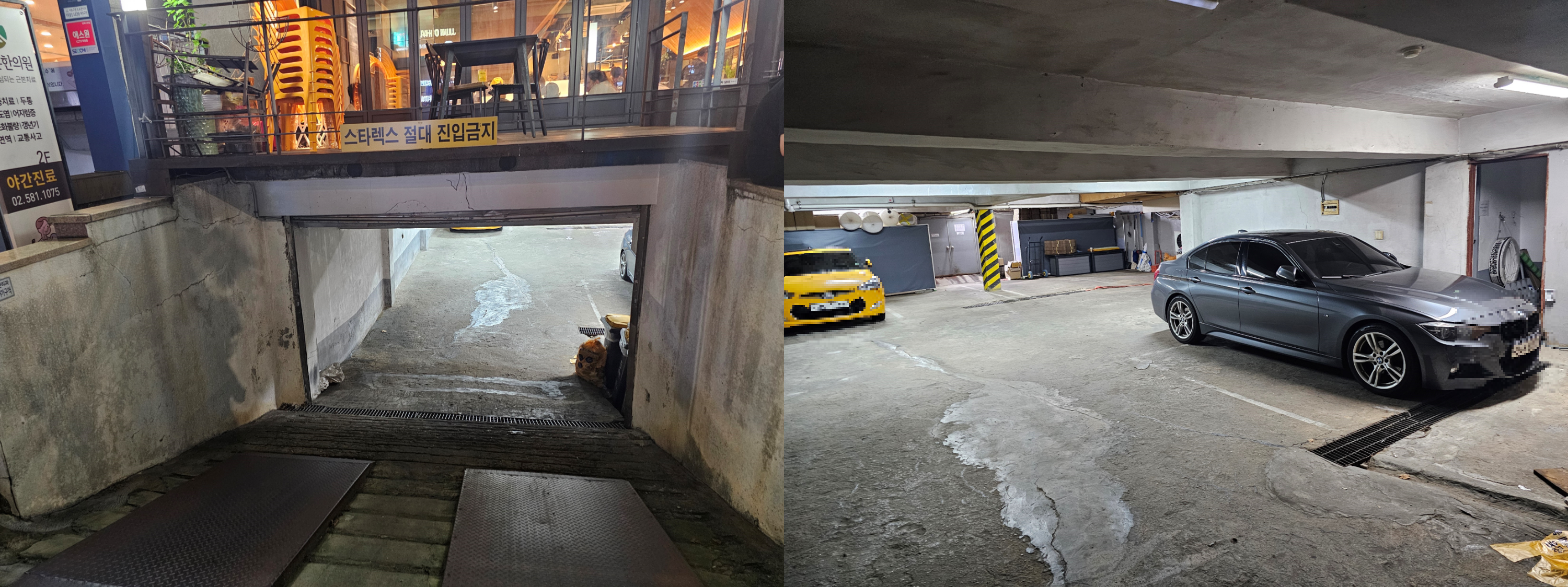건물 내 주차장은 마련되어 있지만 통로가 좁고 주차 가능한 대수가 한정적이라, 큰 차량이나 주차에 예민한 분들에게는 다소 불편할 수 있습니다. 따라서 내방역 대중교통을 활용하거나 근처 공영주차장을 이용하는 방법을 추천합니다.