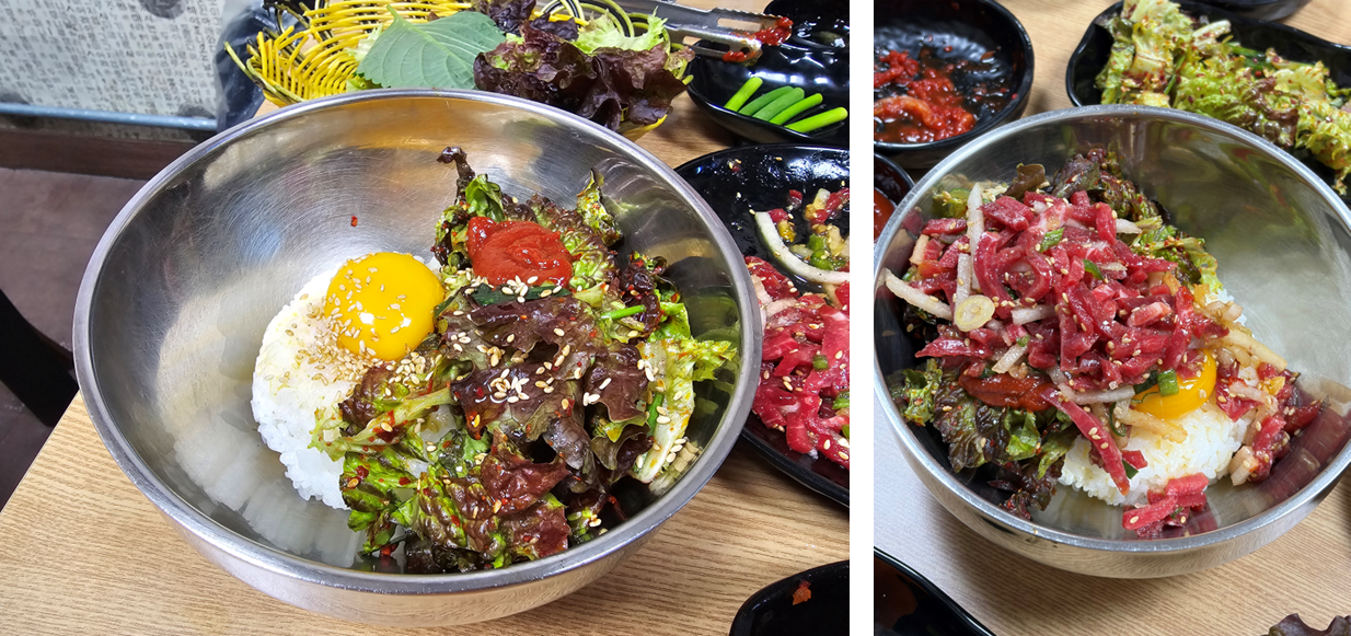 육회 비빔밥에서 육회만 빠진 메뉴라고 보면 됩니다.