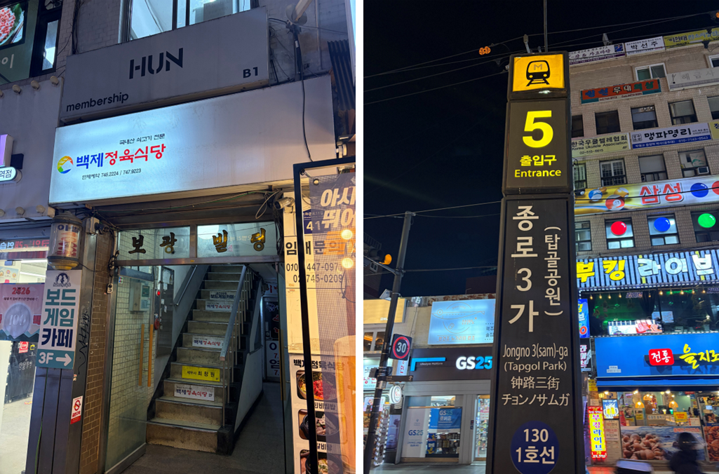 종로3가 백제정육식당 위치